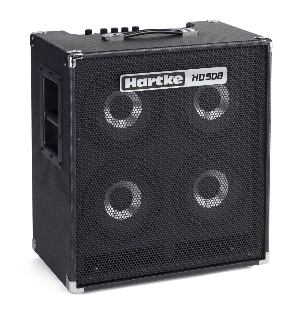 Hartke’s popular HD Series continues to grow with the addition of the high-powered, lightweight HD508 Bass Combo. Packing four 8″ Hartke patented HyDrive speakers and a 500-watt Class D amplifier into a sleek enclosure weighing only 49 pounds, the HD508 provides exceptional bass tone to any rehearsal, stage or studio.