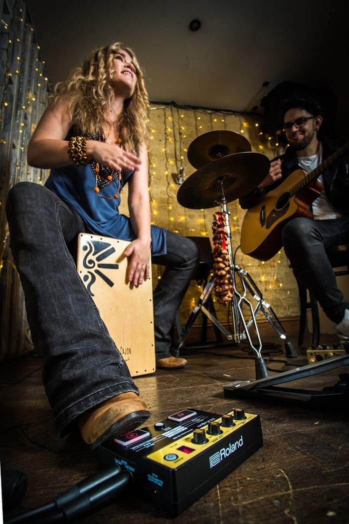 Compact and battery-powered, the EC-10M picks up the cajon’s acoustic sound with the included clip-on condenser mic, which is also used to trigger a variety of onboard tones for layering with the acoustic voice