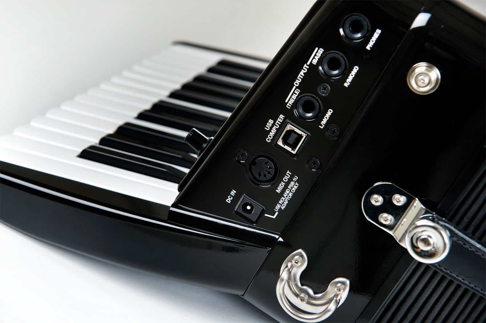 Lugging around an acoustic accordion can be a real pain, but the FR-1x’s lightweight design isn’t the only thing that makes it a wonderfully portable instrument. When you simply want to play along with your favorite tunes, the FR-1x’s onboard USB thumb drive MP3/WAV file player is an excellent convenience to have. Roland also gave the FR-1x a built-in headphone jack – perfect when you want to practice in the middle of the night. There’s even an onboard speaker, so you never have to hunt for a PA when you want to play.