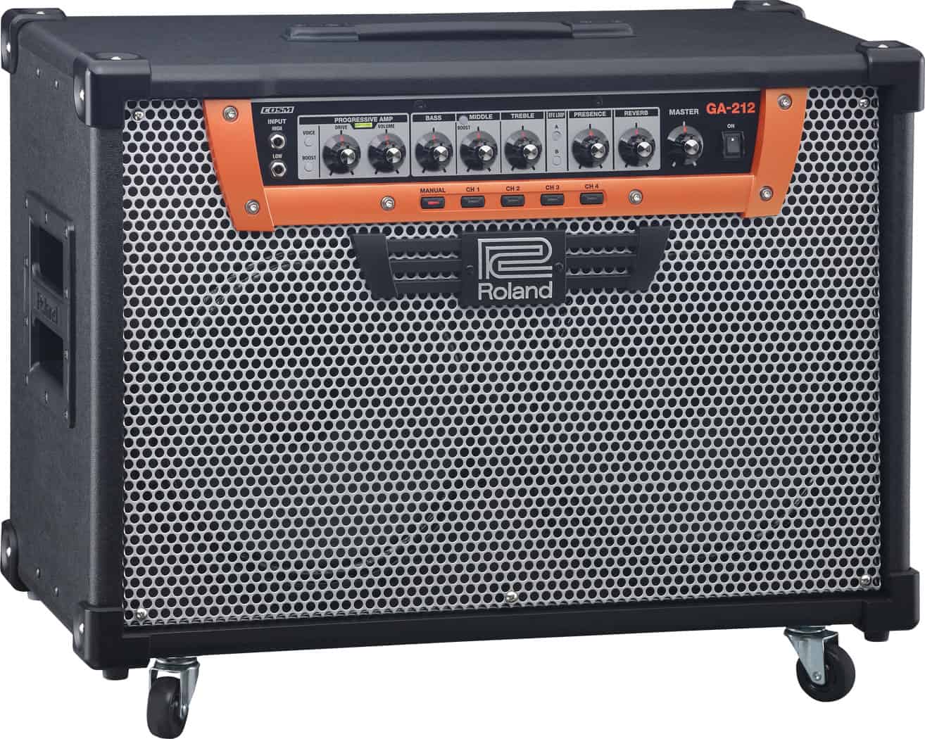 Custom built and supercharged for the stage, the new Roland GA-212 is a unique, powerhouse guitar amplifier. With our latest COSM amp model onboard — Progressive Amp — the GA-212 empowers guitarists with original sound creation, intuitive control, and the ultimate in comfort, expression, and playability. Packed with a pair of 12″ speakers and 200W of power onboard, it is designed for medium to large stages.