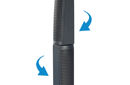 Eight 3.5″ drivers are arranged in an interlocking, 3-segment column array, coupled with a 12″ subwoofer that can produce up to 125dB SPL. To ensure sound is delivered across an entire audience, the VX8.1 provides a horizontal coverage angle of 120° with the full array in center position, as well as 200° with the two array segments rotated 45° in opposite directions. Meanwhile, the system’s subwoofer delivers tight low end down to 40Hz.
